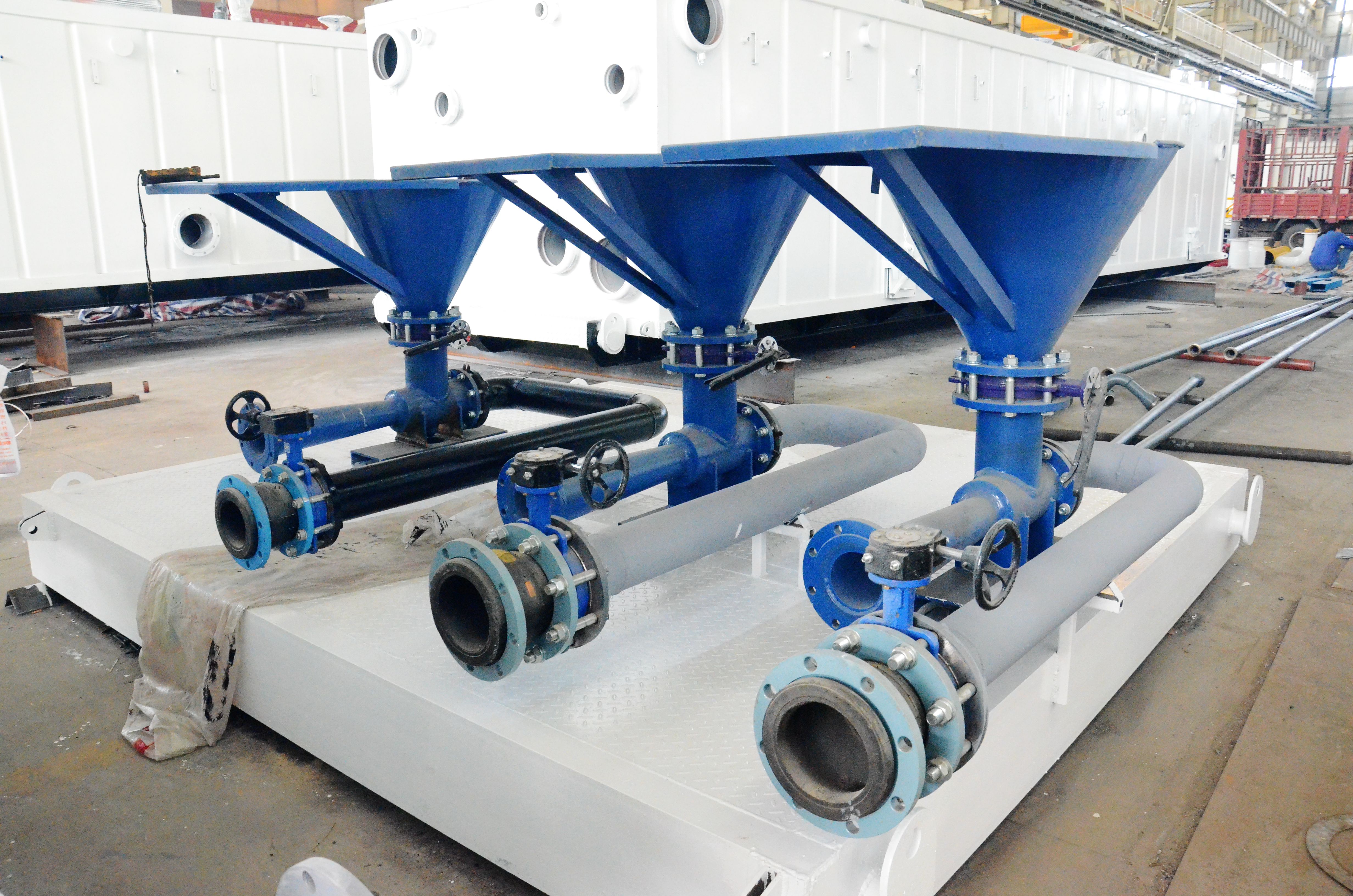 The drilling mud solids control equipment ordered by the customer mainly includes three shale shakers, two centrifuges, one vacuum degasser, one mud cleaner, eighteen pumps, seventeen agitators, three jet mud mixers, seven mud tanks, pipelines and peripheral supporting equipment. This set of system is successfully completed and delivered, fully testing the production capacity of KOSUN, and KOSUN has won the recognition of the customer after passing the strict acceptance check of the customer.