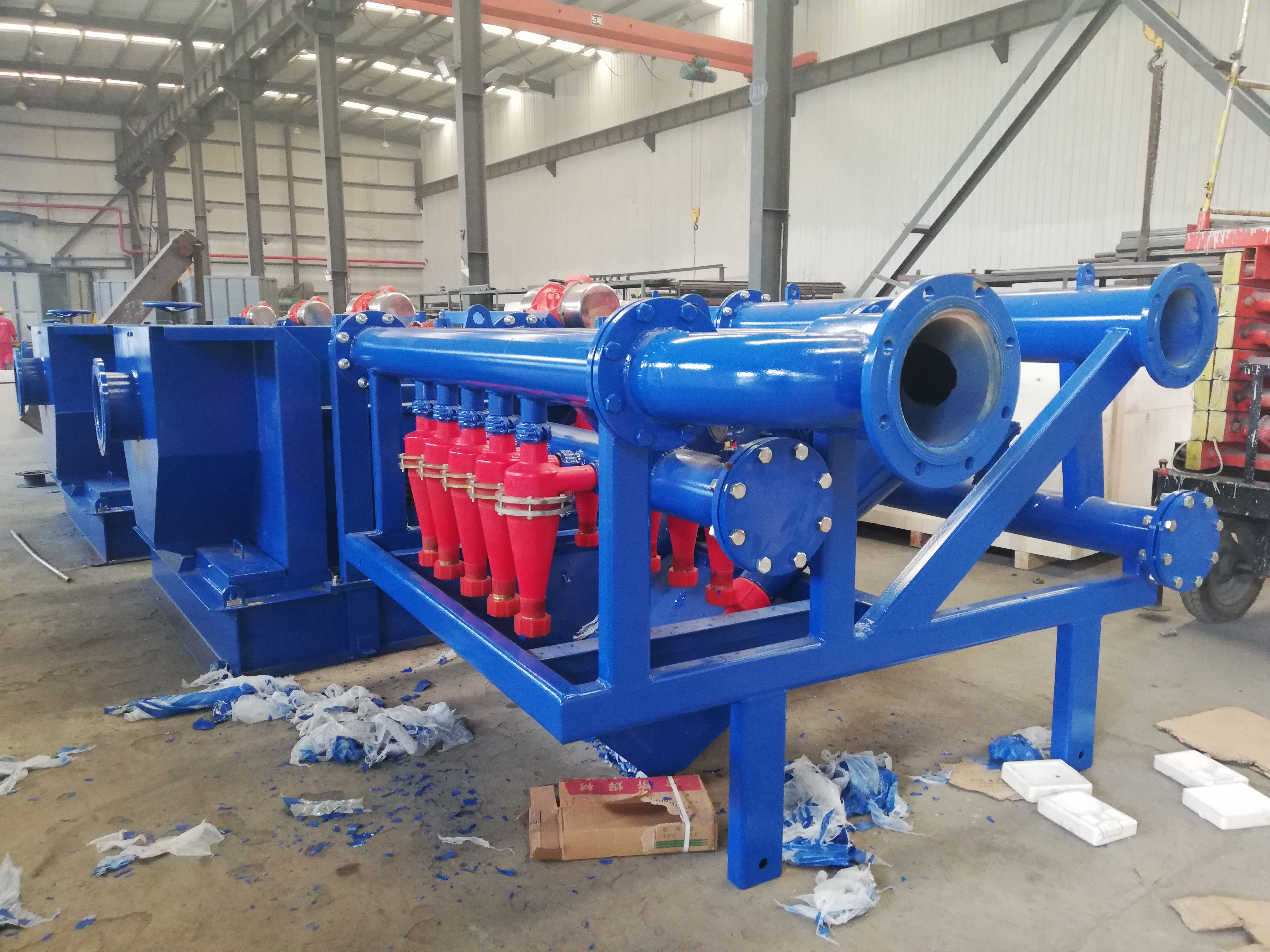 The cyclones of desilter and desander are designed according to the particle sedimentation principle. The drilling fluid as a separating medium spirally enters the cyclones along their inner walls at a certain pressure and speed by virtue of sand pump. The coarser particles spirally sink along inner walls of cyclones under the effect of centrifugal force and gravity, discharge from underflow outlet and fall onto the lower shale shaker with fine-mesh screens for separation, and other mediums spirally rise along cyclones and enter the next stage separation equipment from the overflow outlet for further purification treatment.