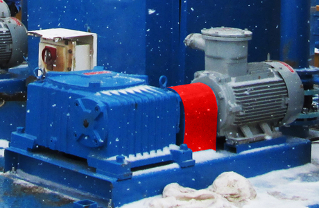 The facility mainly consists of explosion-proof motor, reducer, motor base and impeller assembly, solid couplings are used to join motor with reducer, and reducer with impeller shaft. Four blades are installed and welded to form the impeller. The impeller makes the fluid in vortex motion and improves the agitation effect. The pallet among the blades can prevent solid particles in mud from depositing around the lower blades after shutdown, which reduces the moment of resistance of deposits against the blades when starting and avoids the motor from being burned out due to overload starting.