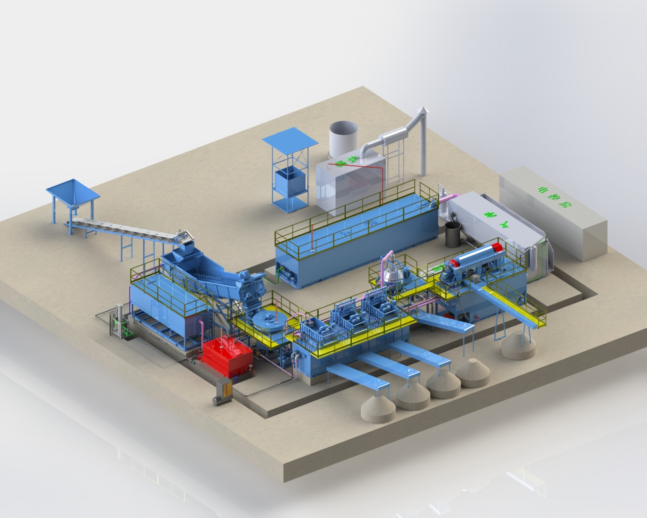 After being treated by the primary cyclone, the slurry flows into the secondary cyclone main tank, and the slurry pump is pressurized into the secondary cyclone, and the 0.075mm-0.020mm particles in the mud are
